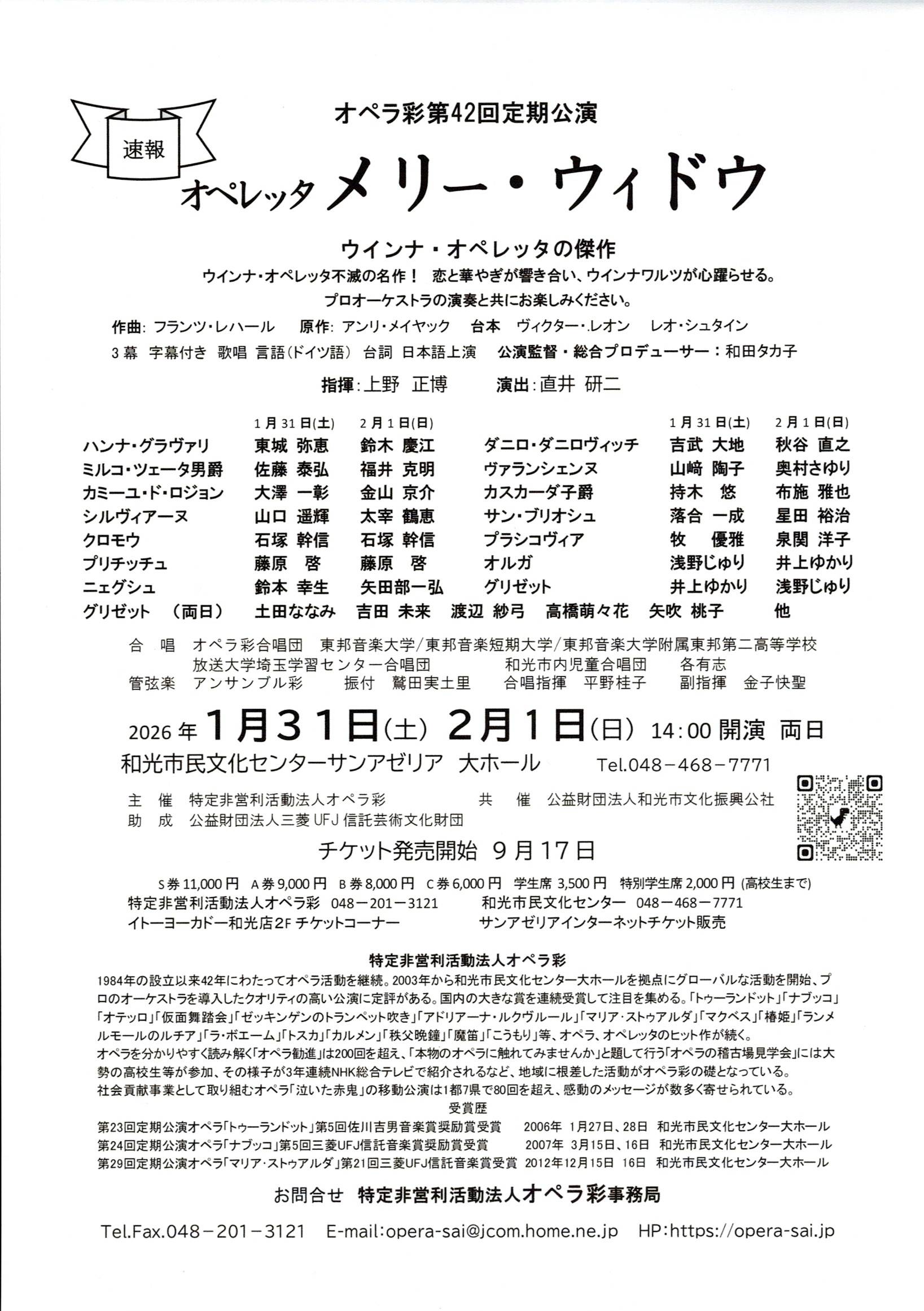 オペラ彩第42回定期公演 オペレッタ「メリー・ウィドウ」